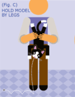 - 고양이를 옆으로 눕히거나 머리를 위로 한 채 자신의 배에 기대어 안는다.
