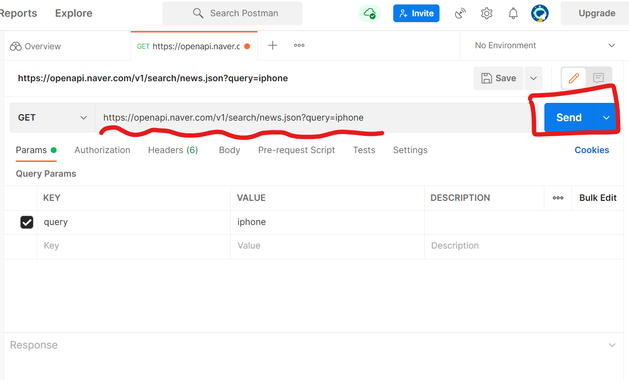 GET 칸에 API 주소와 query 값을 주고 SEND 버튼을 클릭!