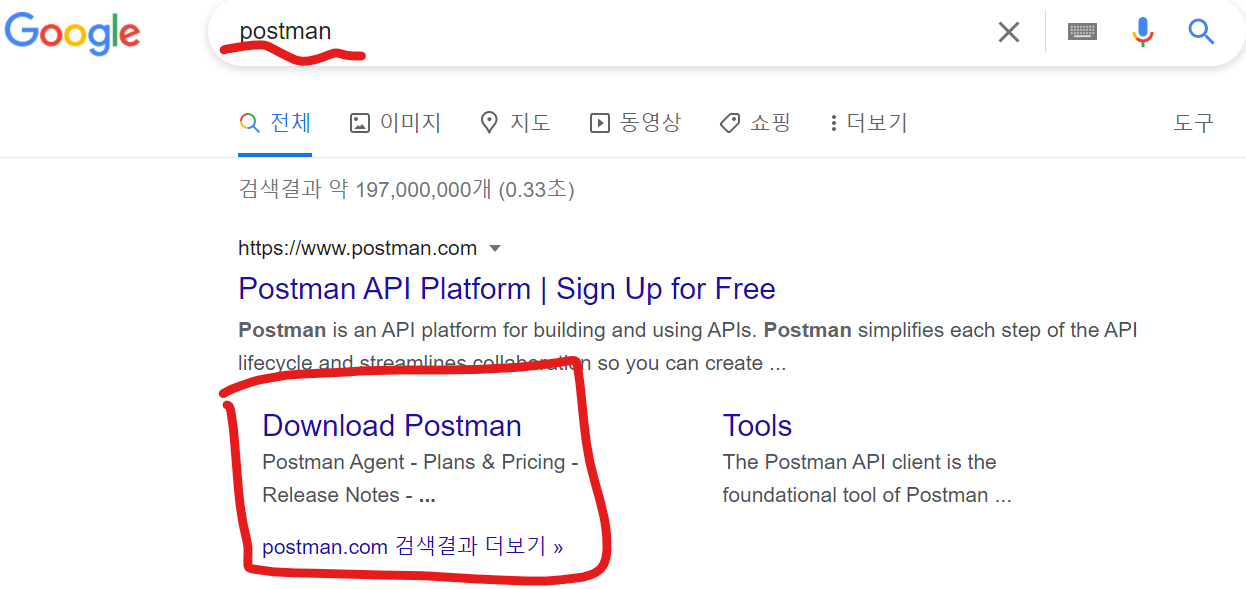 구글에서 'POSTMAN'을 검색하면 바로 아래와 같은 검색 결과가 나온다.