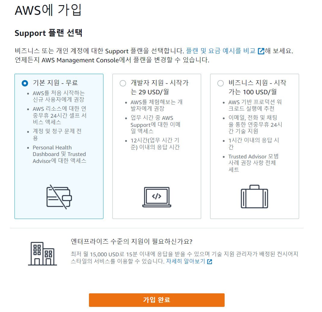 AWS 서비스 안에는 '프리 티어'라는 12개월 무료 사용 서비스들이 있는데, 본인은 그걸 가입할 거다.