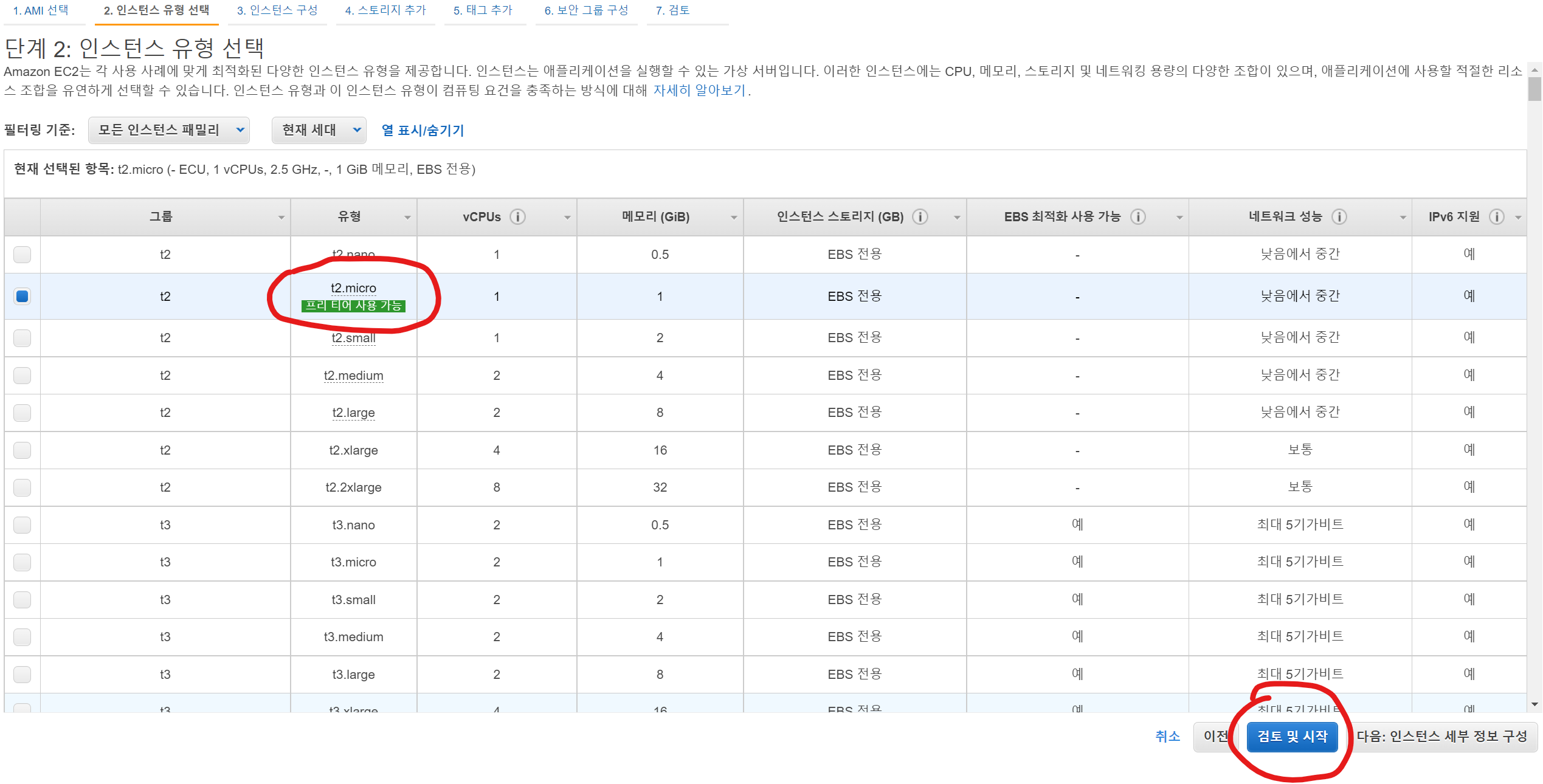 고민을 해볼까 했지만, '프리 티어 사용 가능' 한 것이 딱 하나 밖에 없고, 자동 선택이 되어 있다.