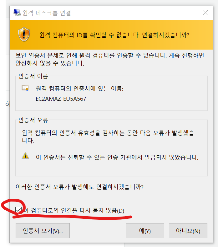 다음에 또 물어보면 귀찮을 것 같으니 '기억'에 체크!