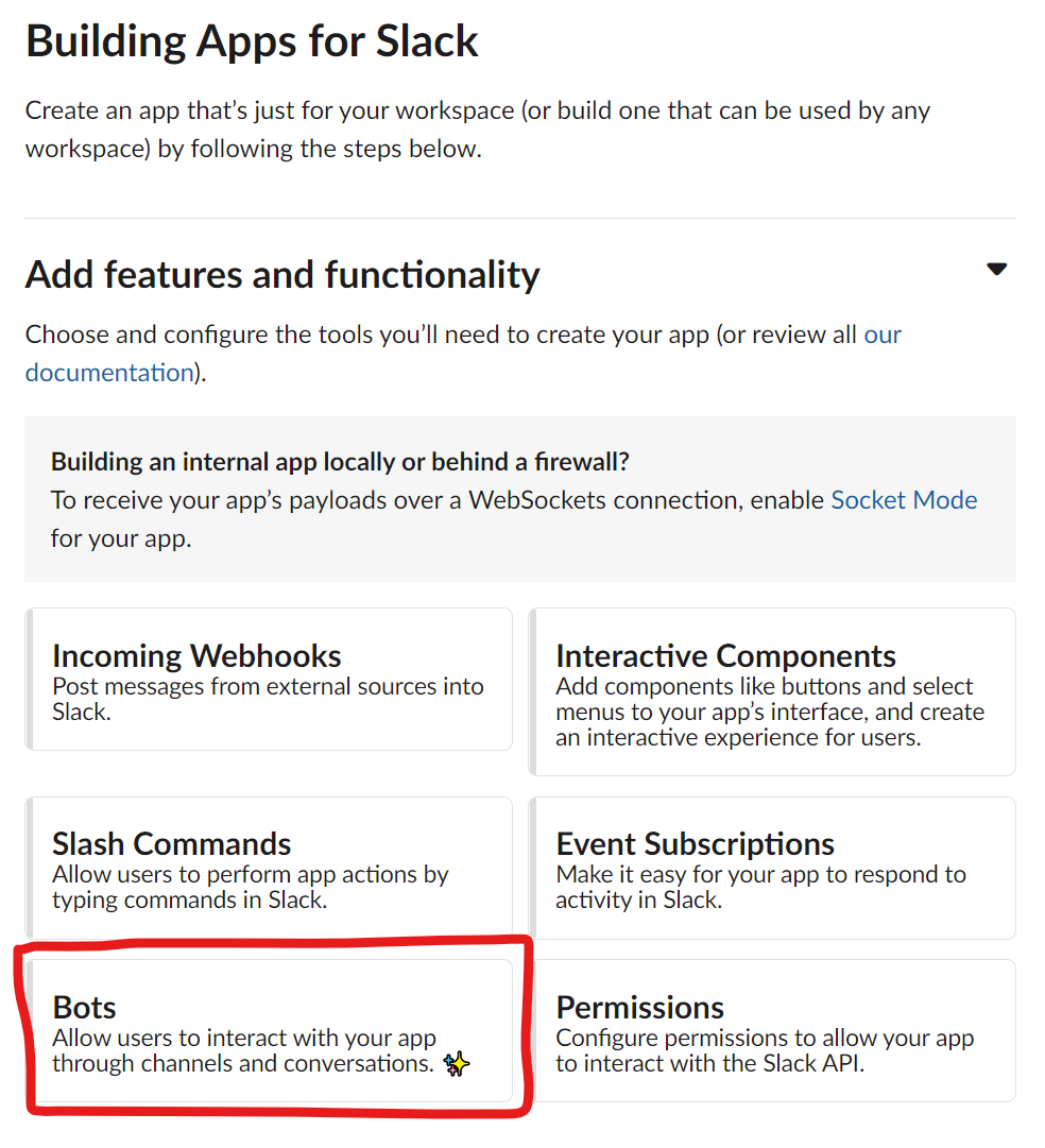 a. 자기가 만든 Slack App이 크게 뭘 할 건지 선택해준다.